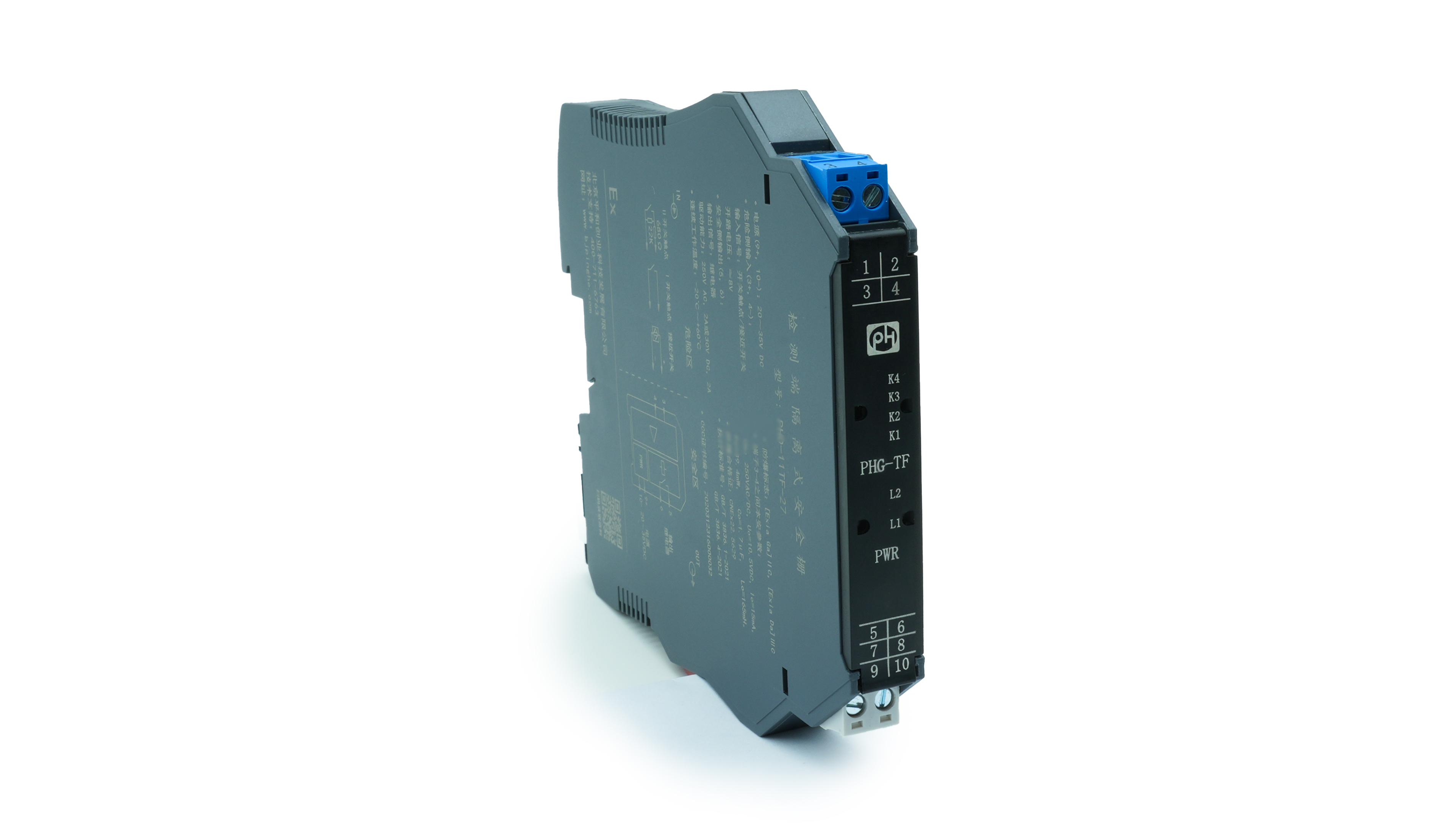 电涌保护型开关量输入继电器输出隔离栅,将来自危险区的开关触点或接近开关的输入信号,通过安全栅隔离传输到安全区继电器输出。线路故障检测通过单独的继电器输出,并在模块顶部LED灯显示。模块的拨码开关用来设置输入和输出同相或反相控制,以及设置开启或关闭线路故障检测报警指示功能。