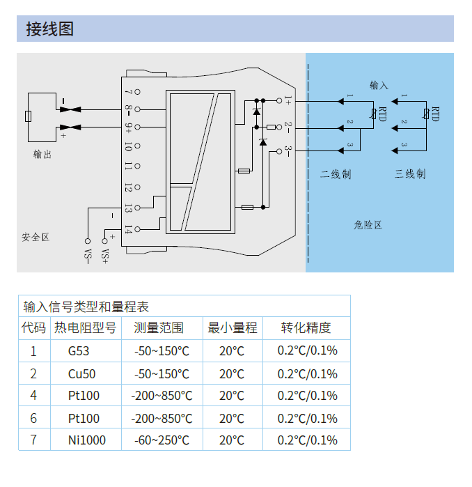 信号范围及量程范围 信号范围:对应热电阻的测量范围