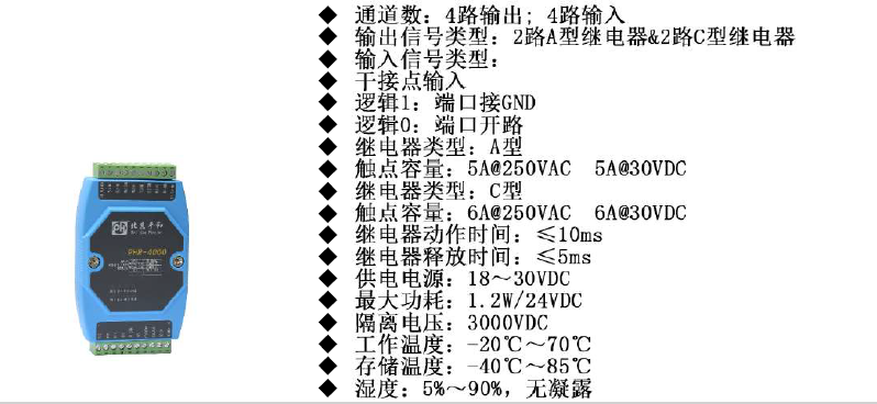 | 输出信号类型 | 2路A型继电器&2路C型继电器 |