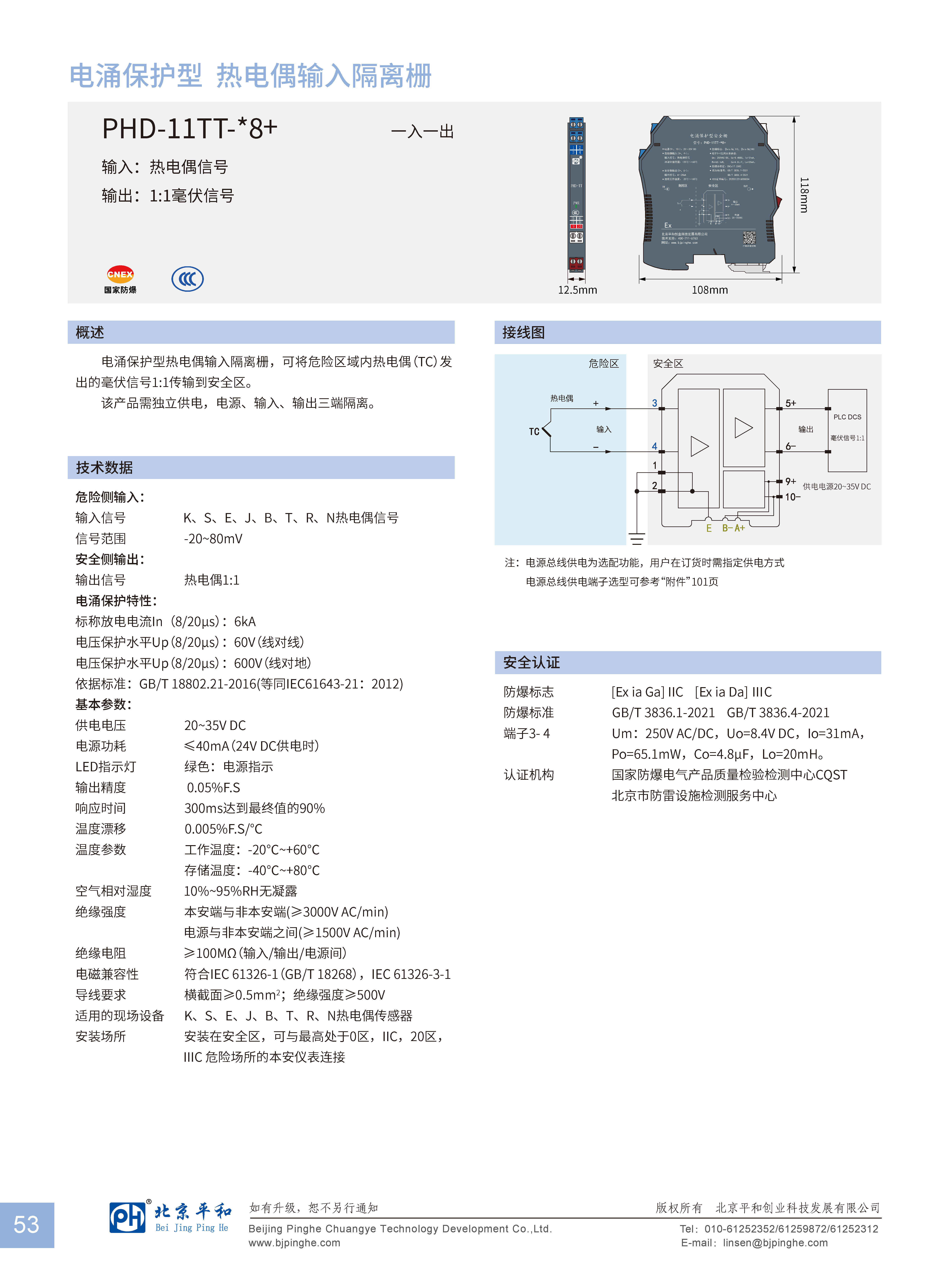 电涌保护型热电偶输入隔离栅,可将危险区域内热电偶(TC)发出的毫伏信号1:1隔离传输到安全区。