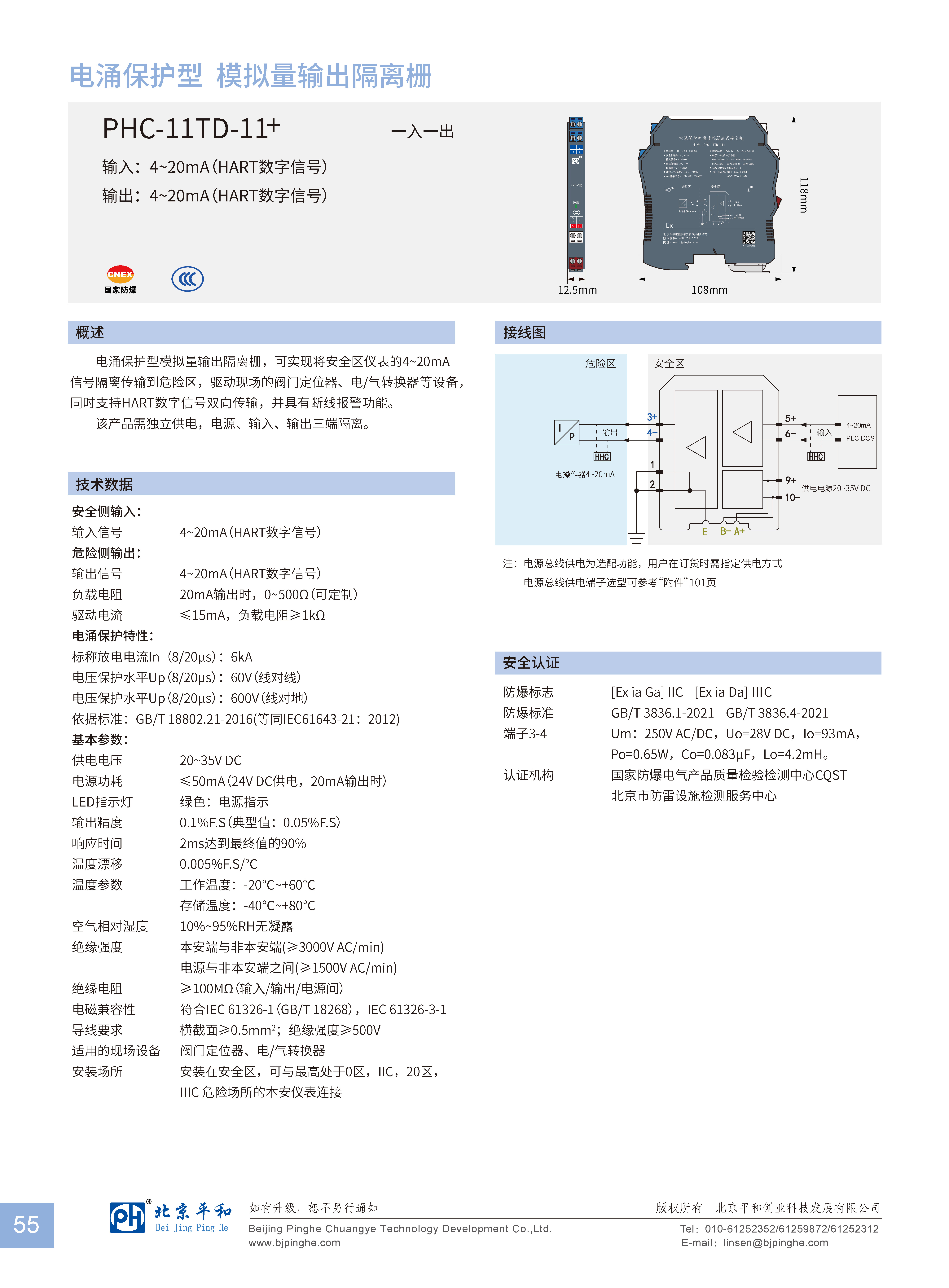 安装场所 安装在安全区,可与最高处于0区,llC,20区,IIIC危险场所的本安仪表连接