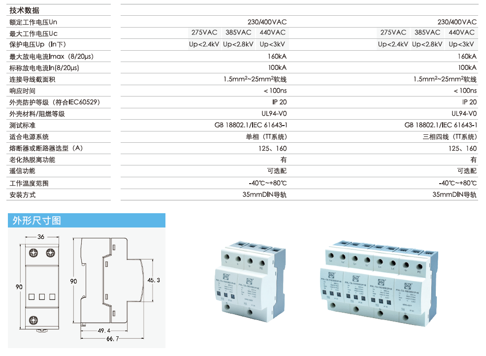 | 测试标准 | GB 18802.1/IEC61643-1 |