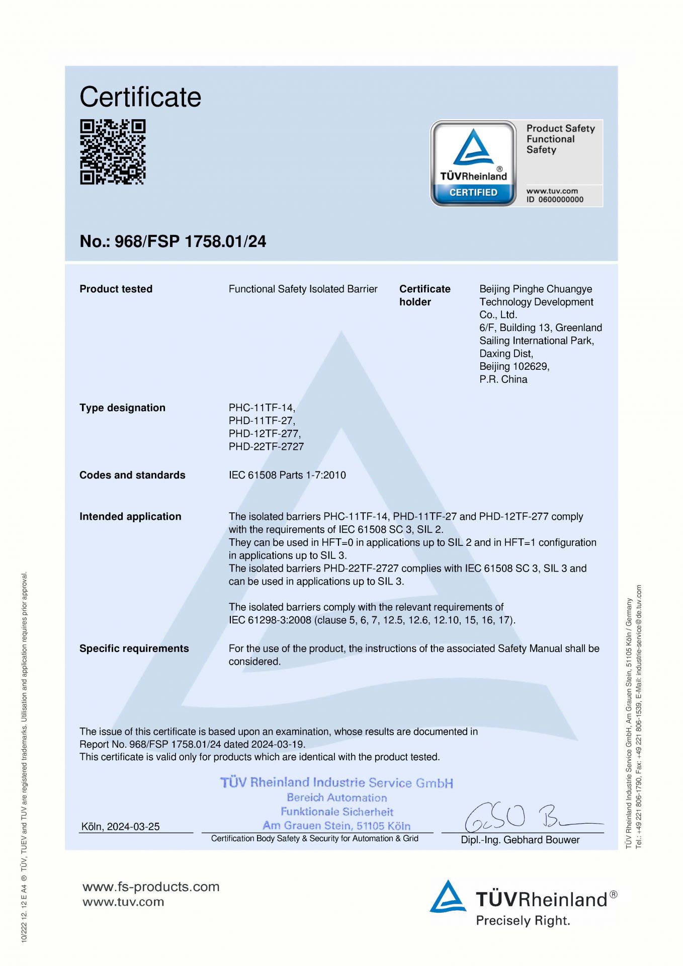 隔离式安全栅功能安全(SIL3)认证证书