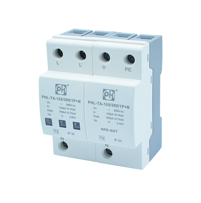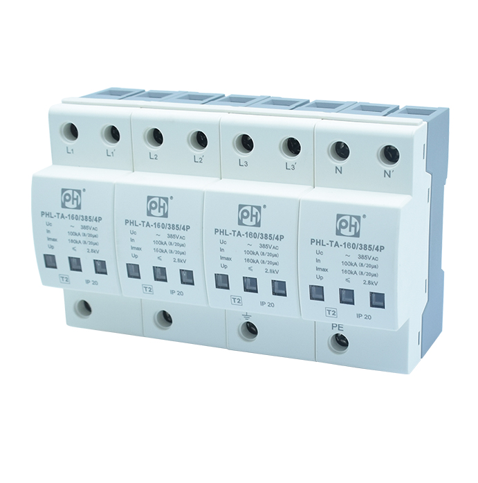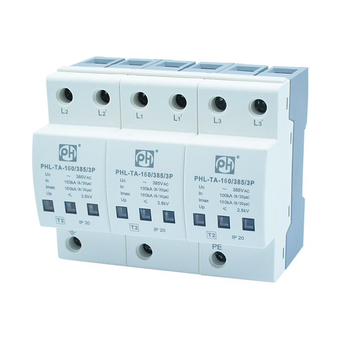 用于第二级的三相电源浪涌保护器,采用相线对零线,以及零线对地的共差模保护模式,适合安装在TT供电制式的分路配电柜,以及其他LPZ1区与LPZ2区和后续分区的交界处。