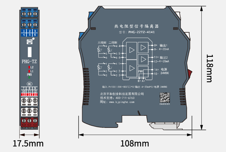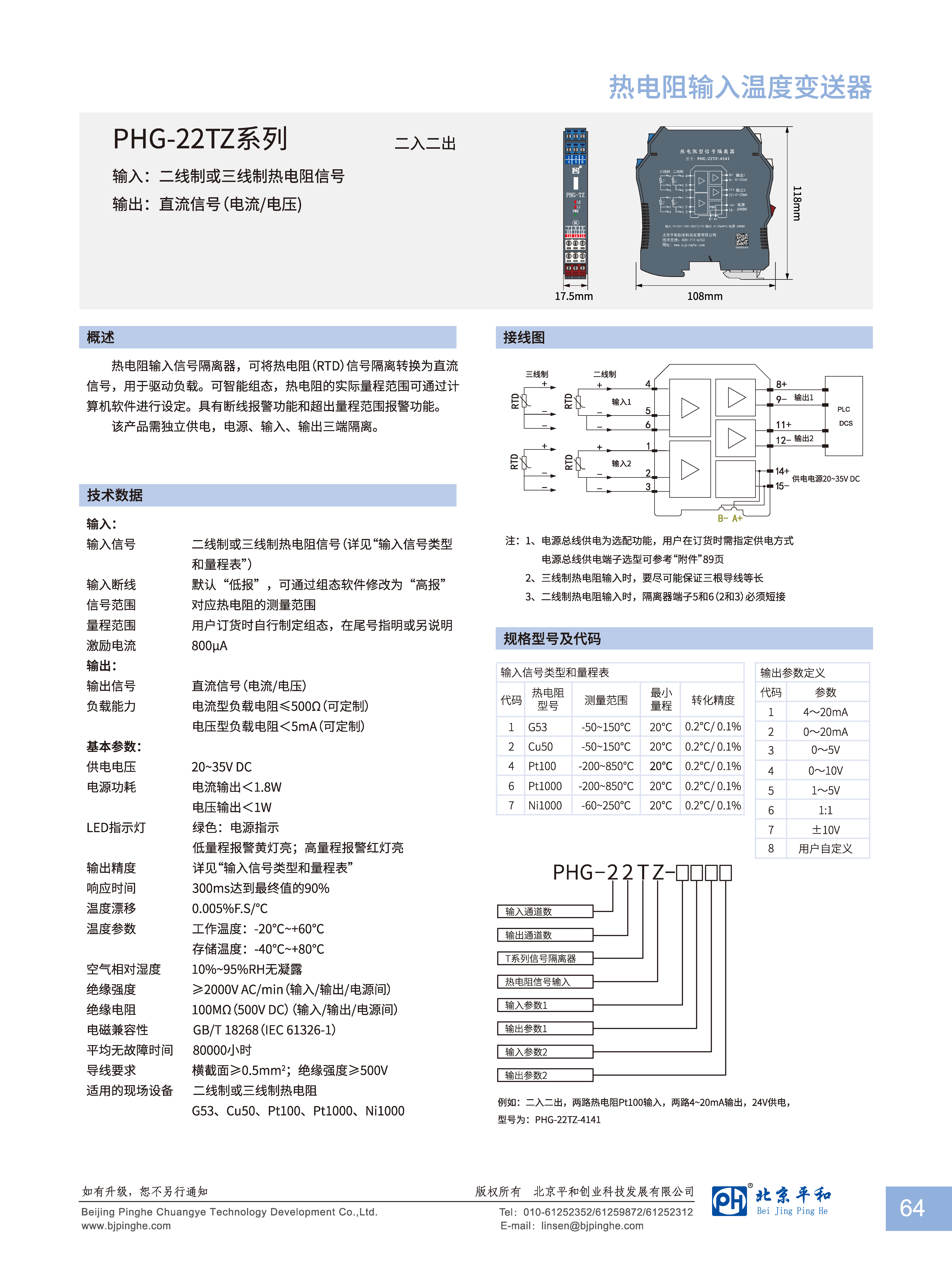 热电阻输入温度变送器,可将热电阻(RTD)信号隔离转换为直流信号, 用于驱动负载。可智能组态, 热电阻的实际量程范围可通过计算机软件进行设定。具有断线报警功能和超出量程范围报警功能。