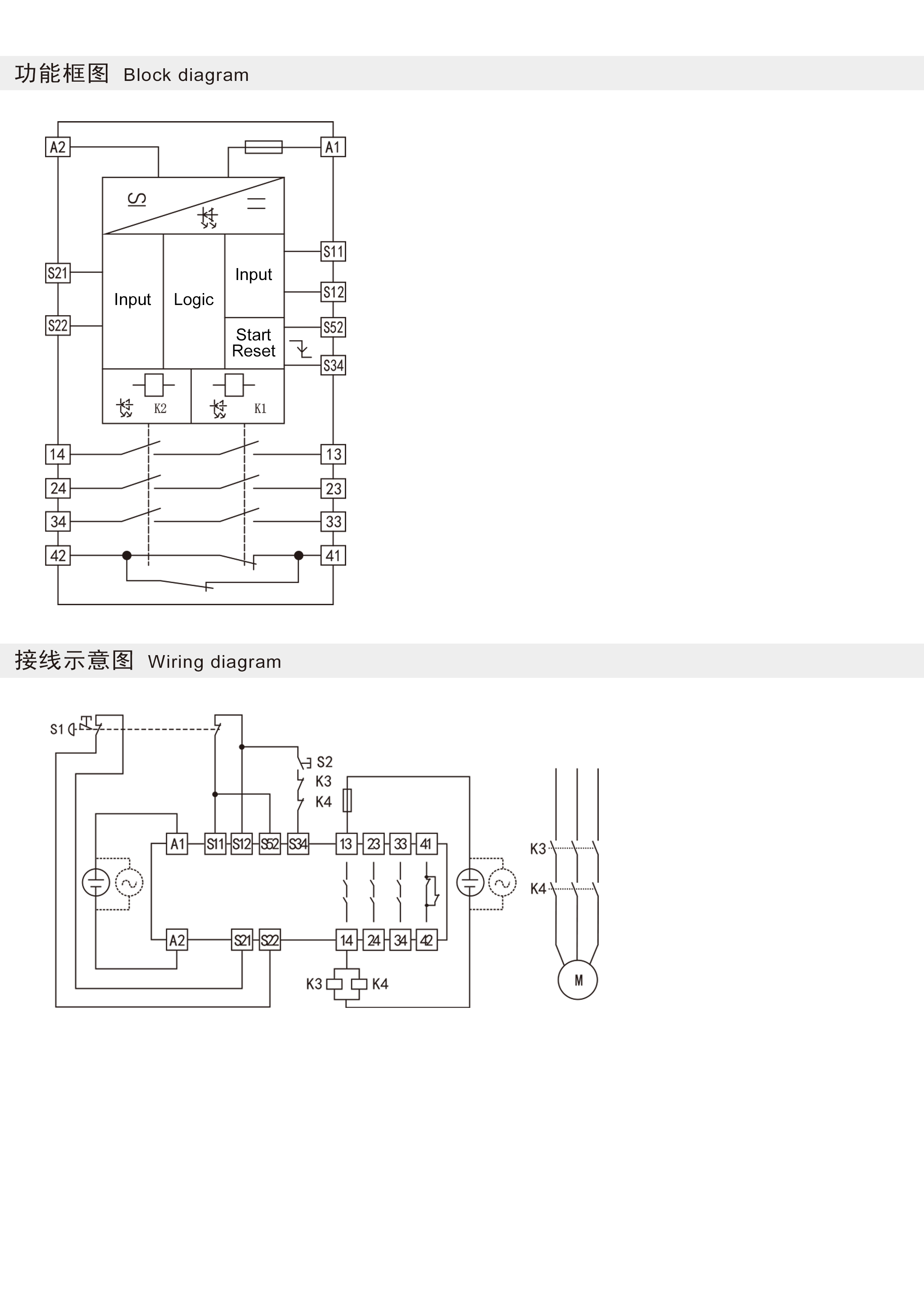 PH6102-3A1B(M)是一款安全继电器控制模块,适用于急停按钮、安全门控制开关输入,具有3路常开(NO)安全输出触点和1路常闭(NC)辅助输出触点的安全继电器。它支持单、双通道操作,手动复位,并具有通道间短路监控功能。
