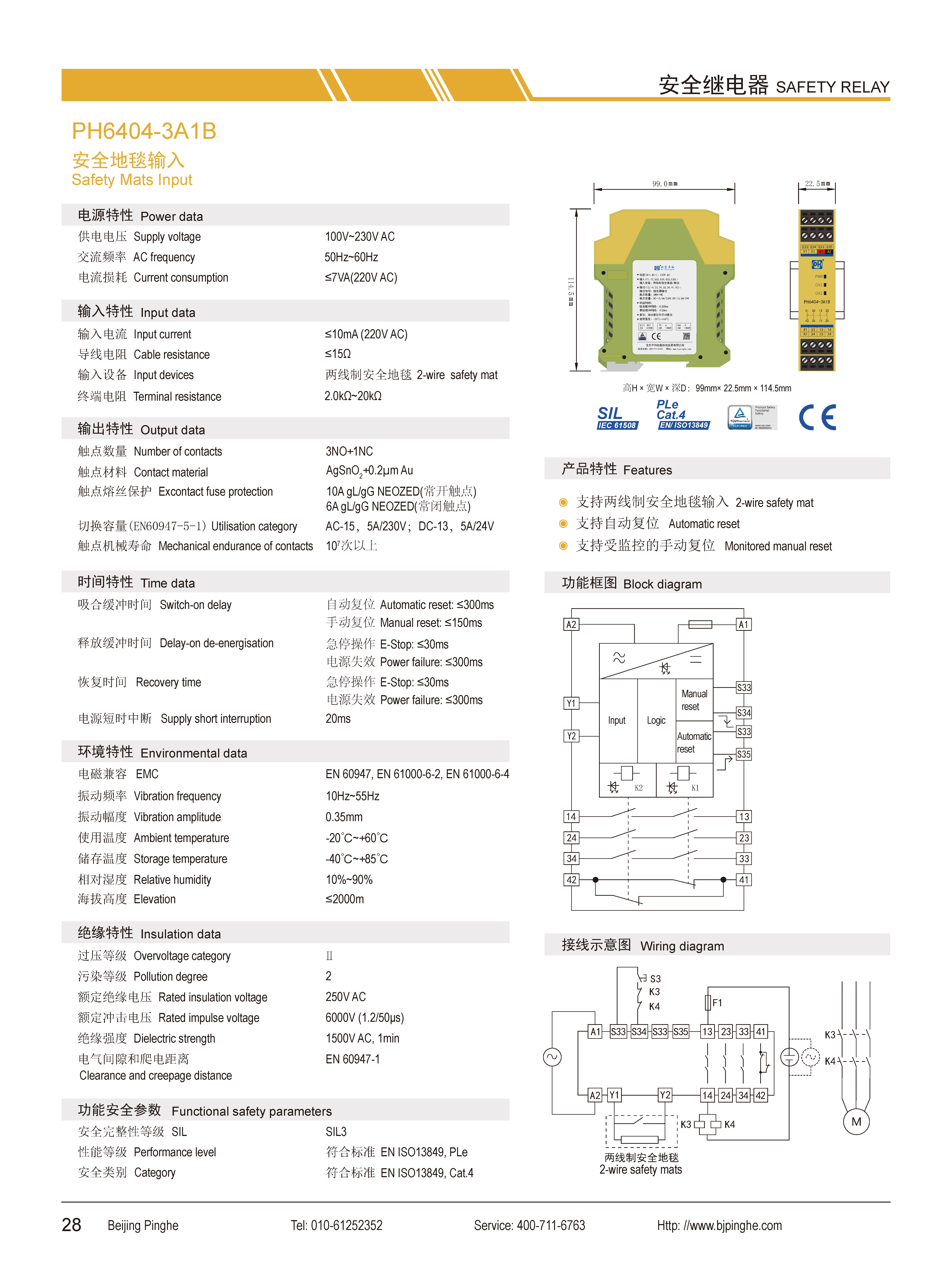环境特性 电磁兼容:EN60947,EN61000-6-2,EN61000-6-4