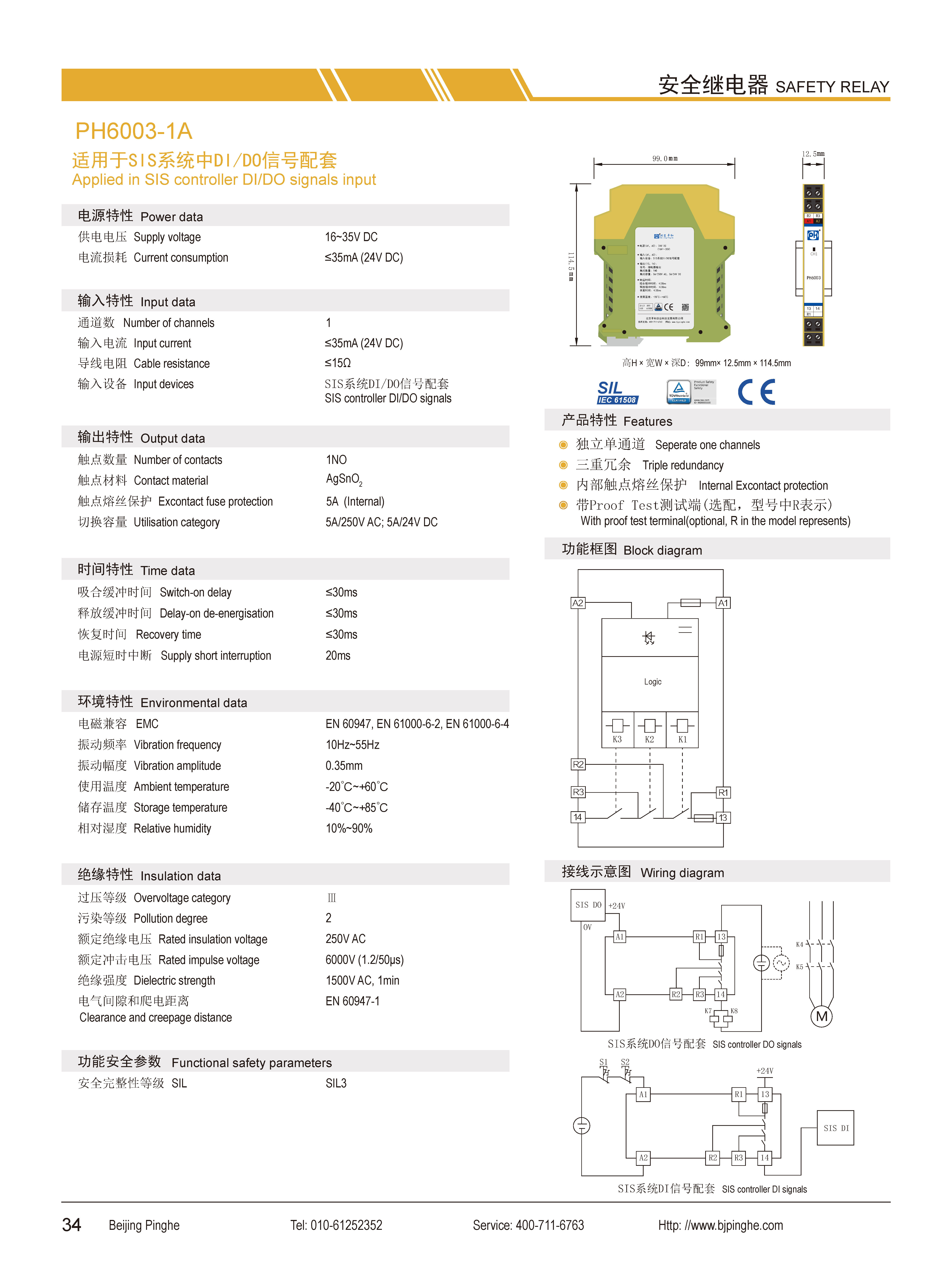 PH6003-1A是一款安全继电器控制模块,适用于安全开关、SIS系统中DO信号隔离转换,具有1路常开(NO)触点,预留端子方便实现快速的离线Proof Test测试,内部电路采用Fail-safe技术,3重冗余技术和触点熔接保护技术。