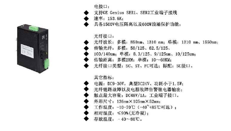 光纤接口类型:SC、ST、FC可选;标配:SC接口。