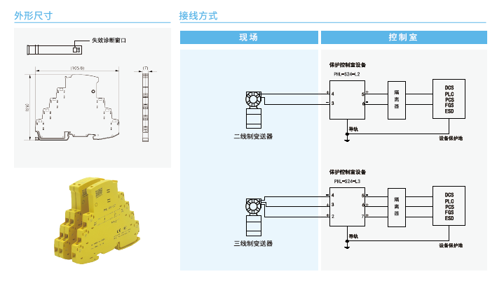 PHL-S系列SPD主要用于保护以二线制、三线制方式连接的变送茶、开关,题率信号、通信设备、热电阻、热电偶等现场设备以及控制室IO.DCs、PLC等设备使其免受雷击电涌冲击电压或操作过电压的损害。主要特点有: