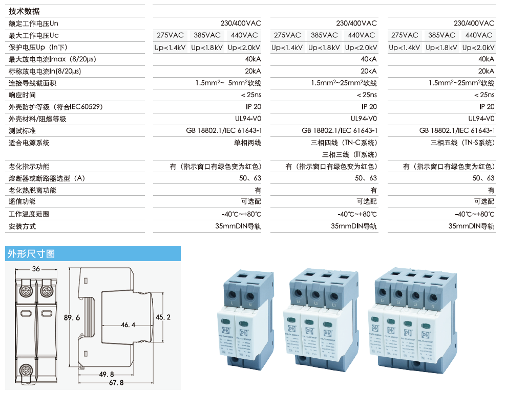 | 测试标准 | GB 18802.1/IEC61643-1 |