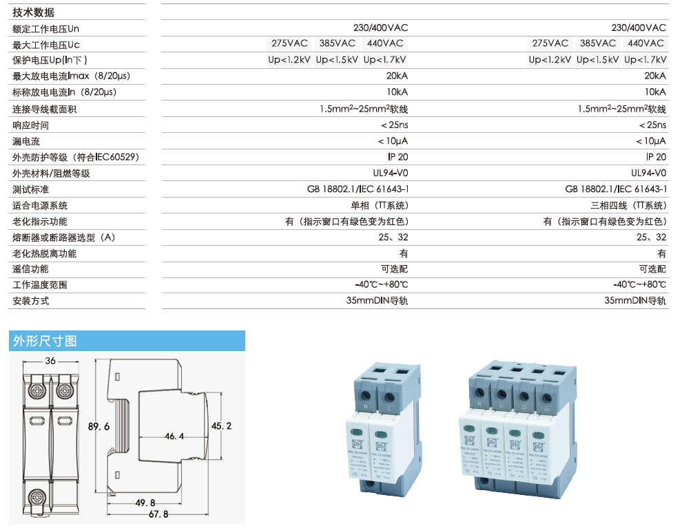 | 测试标准 | GB 18802.1/IEC61643-1 |