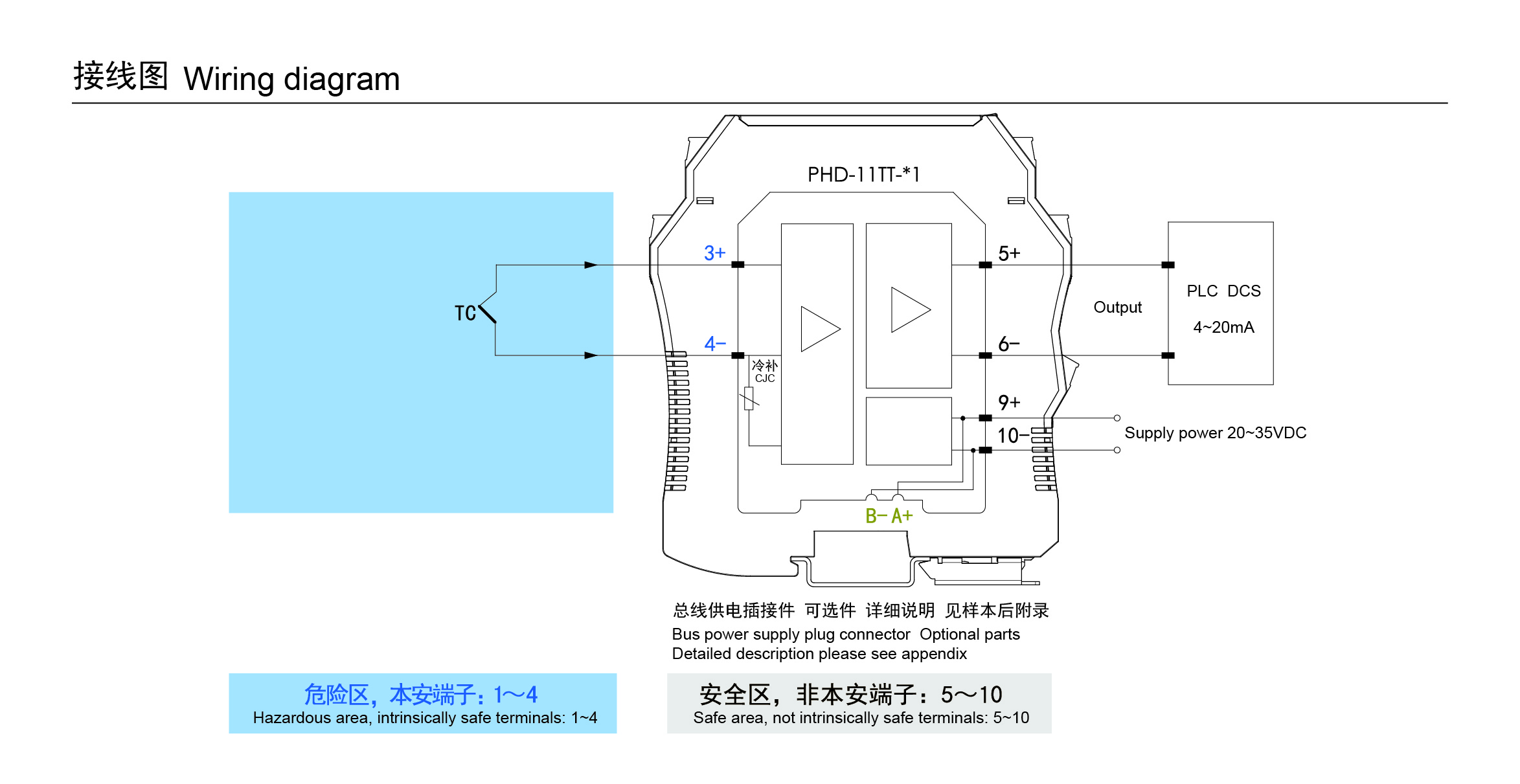 | 供电电压 | 20-35VDC,功耗<1.2W (24VDC供电,20mA输出时) |