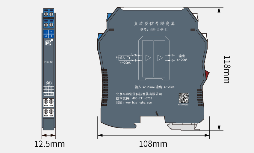 直流型信号隔离器,电路由信号输入端获取电源能量,把输入端4~20mA电流信号,隔离转换为4~20mA电流信号到输出端。