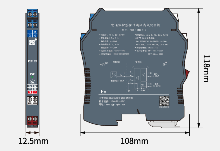 安装场所 安装在安全区,可与最高处于0区,llC,20区,IIIC危险场所的本安仪表连接