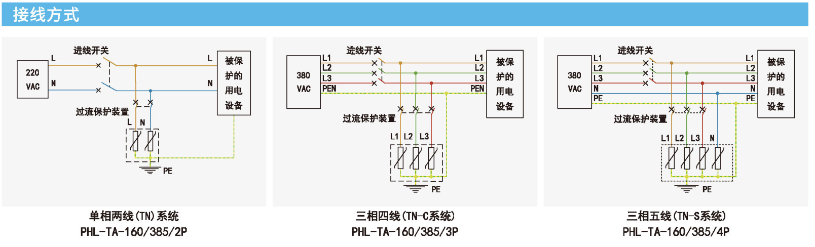 电源类 电涌保护器 三相四线 (TN-C系统),三相三线 (IT系统)