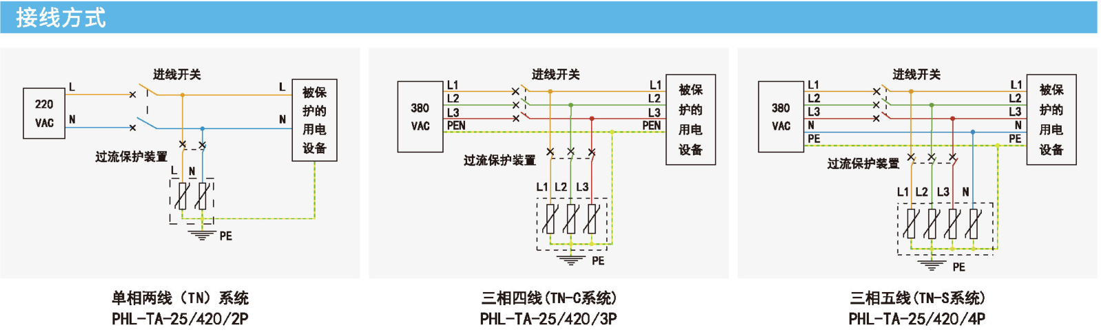 电源类 电涌保护器 三相四线 (TN-C系统),三相三线 (IT系统)