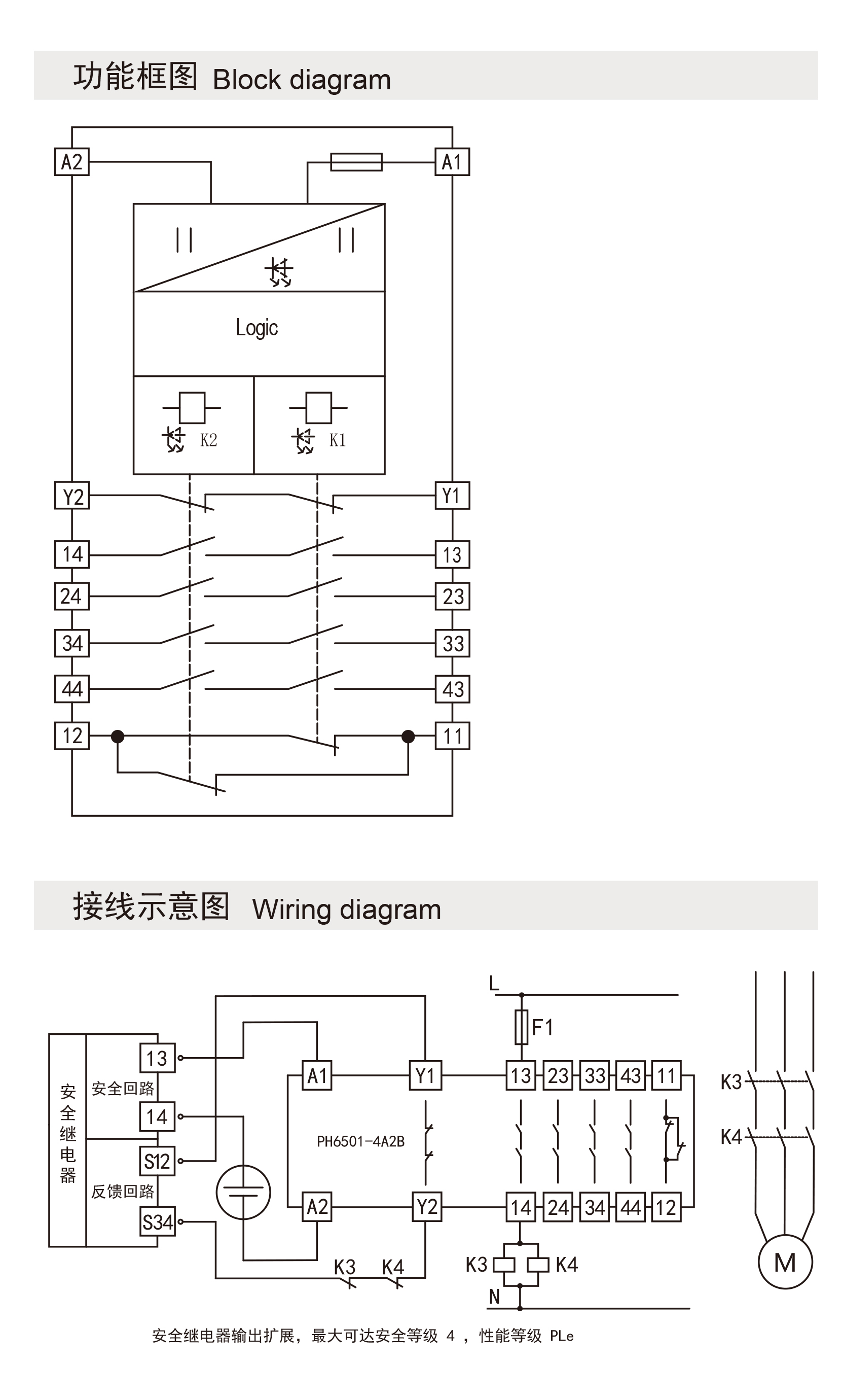 | 性能等级 | 符合标准EN ISO13849,PLe |