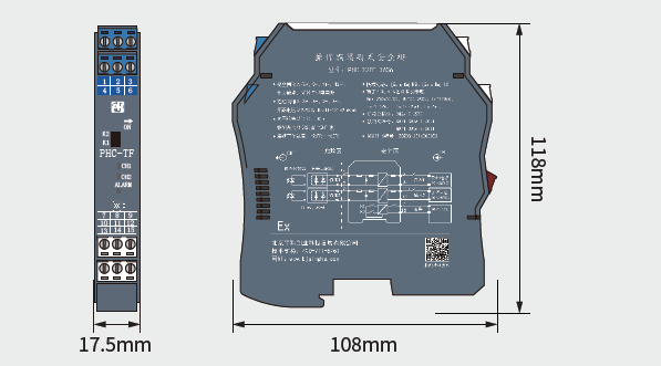 | 认证参数(端子2-3, 5-6之间) | Um=250V AC/DC, Uo=25.2V, Io=170mA, Po=1.07W, Co=0.82uF, Lo=4mH |