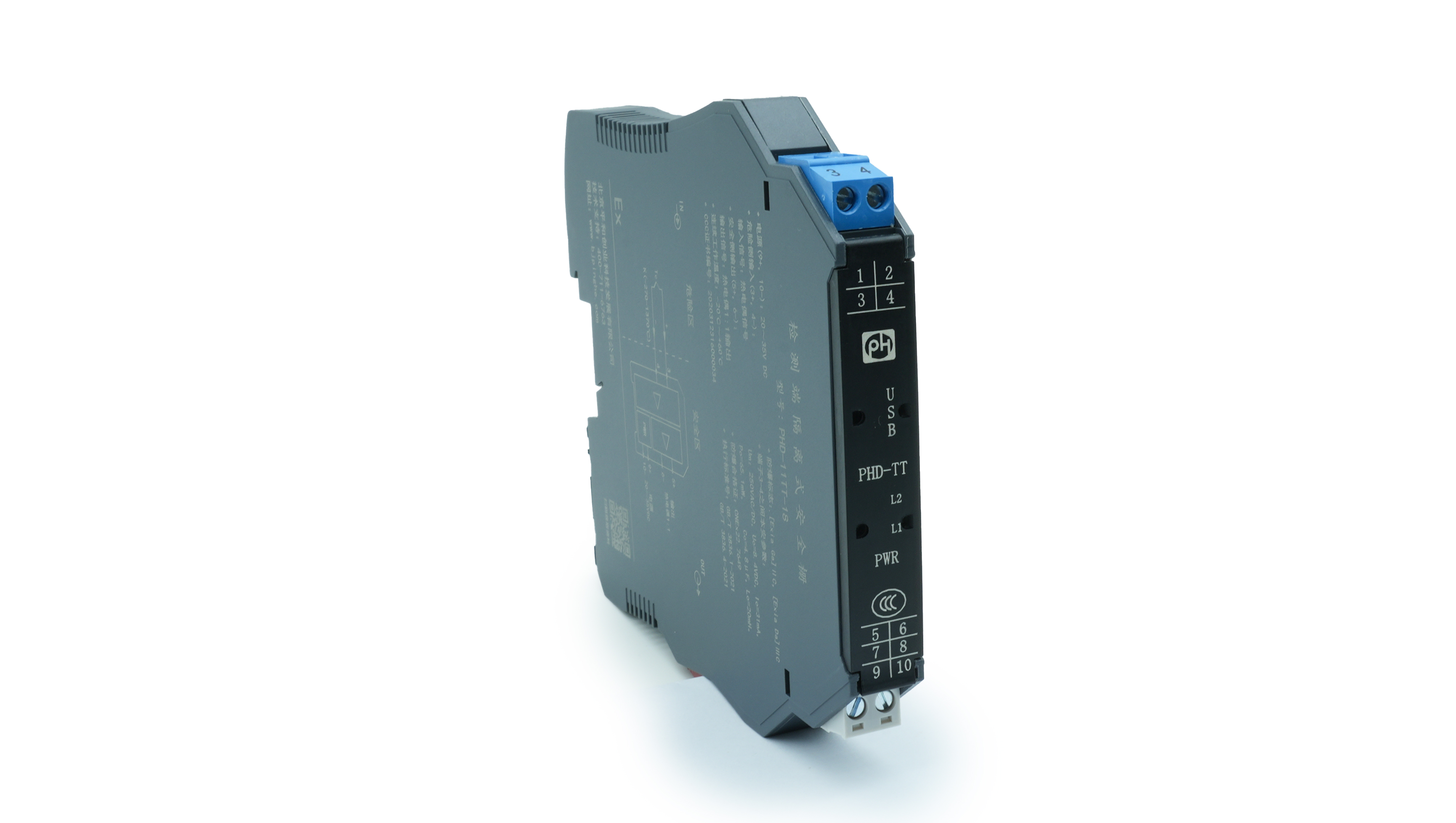 电涌保护型热电偶输入隔离式安全栅,可将危险区域内热电偶(TC)信号隔离转换为4-20mA电流信号,输出到安全区。此安全栅内置冷端补偿,可智能组态,热电偶的实际量程范围可通过计算机软件进行设定。具有断线报警和超出量程范围报警功能。