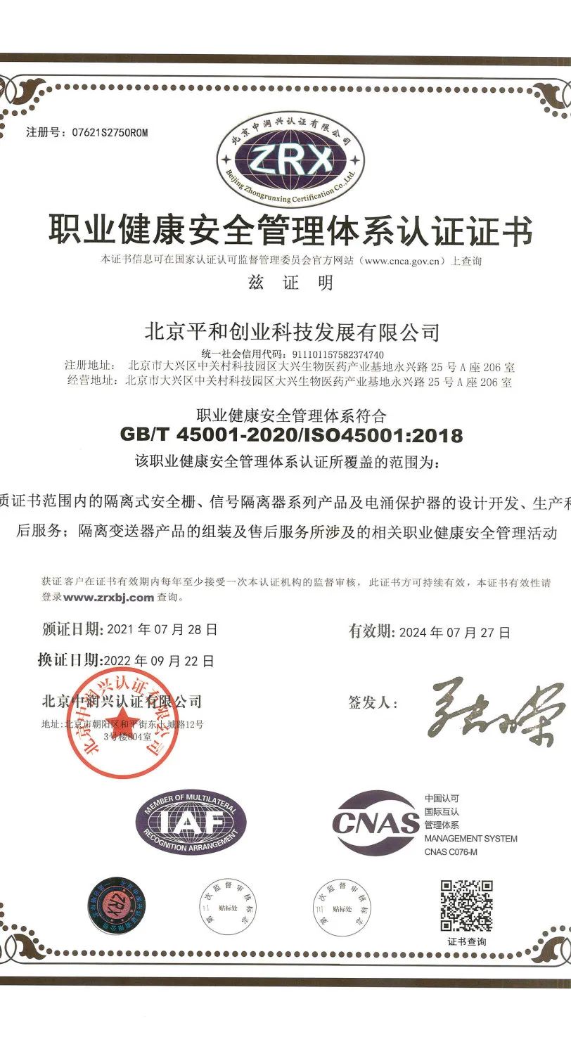全面高等级的体系认证是确保产品高质量、企业稳定运行的前提。北京平和专注高端工业信号接口模块,高度重视企业内在管理和外在市场行为,不断优化企业结构,竭力提高企业管理水平和综合实力,不断为中国工控产品引领世界而努力奋斗,力争将北京平和打造成全球工控行业知名品牌!