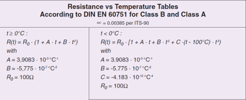 Pt100热电阻温度与电阻的非线性关系: